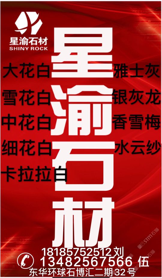 星渝石材主營 香雪梅 大花白 雅士灰 中花白 卡拉拉白 細花白
