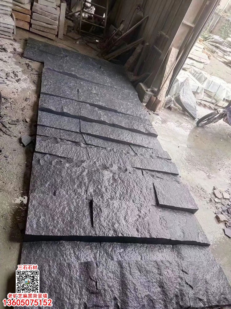 長泰芝麻黑自然面背景墻文化石凹凸面幕墻石材芝麻灰