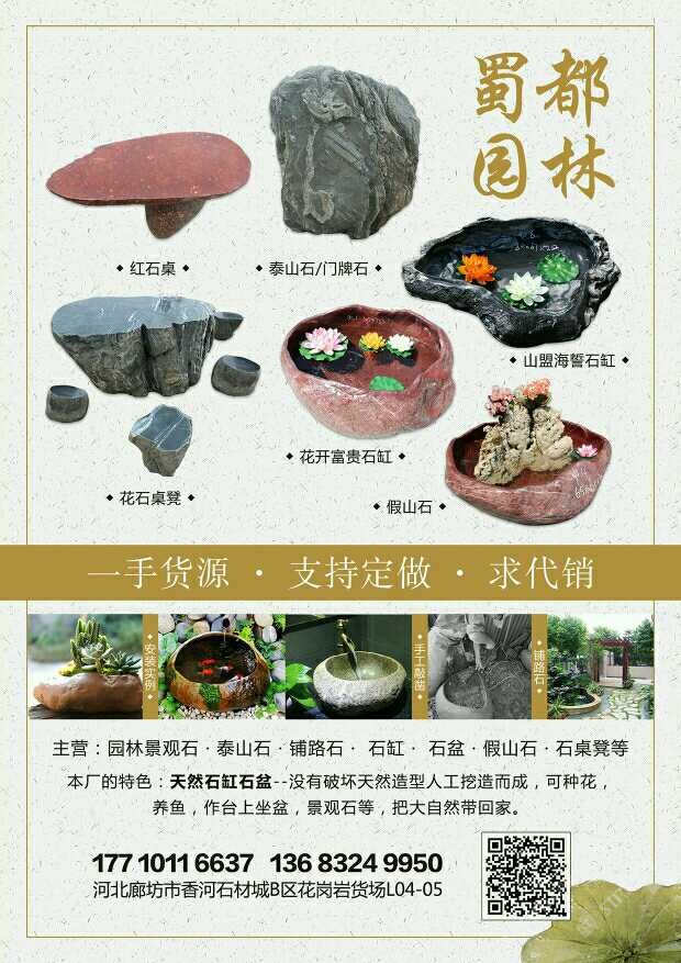 發(fā)布信息: 專(zhuān)營(yíng):泰山石、景觀石、天然石頭花盆水盆、鋪路石、假山石、石桌石凳等,一手貨源,支持定做,求代銷(xiāo)??!