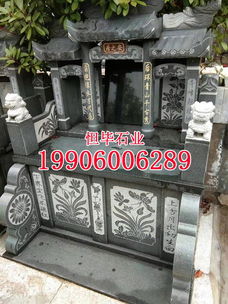 g654石材豪華石雕火葬碑家族墓碑芝麻黑公墓套墓