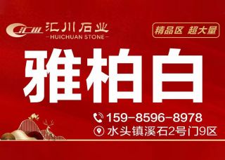 匯川石業(yè)主營(yíng)產(chǎn)品:雅柏白,雅柏白2,雅柏白(雅柏灰),雅柏白(灰),雅柏白(宏大礦),鵝毛白,雅柏白(雅高礦)企業(yè)地址:福建泉州南安水頭鎮(zhèn)溪石2號(hào)門(mén)9區(qū)
